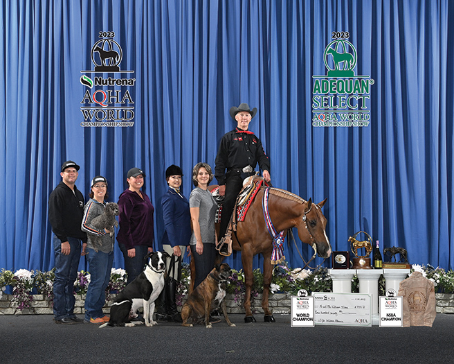 But that was just the beginning. After sitting out his entire 3-year-old year because of illness, Scotty returned to the show pen in 2023 with a bang. He earned World Championship titles in Junior Western Pleasure at the NSBA World Show in August and at the AQHA World Show in November. He also captured a Congress Championship that year in Junior Western Pleasure.